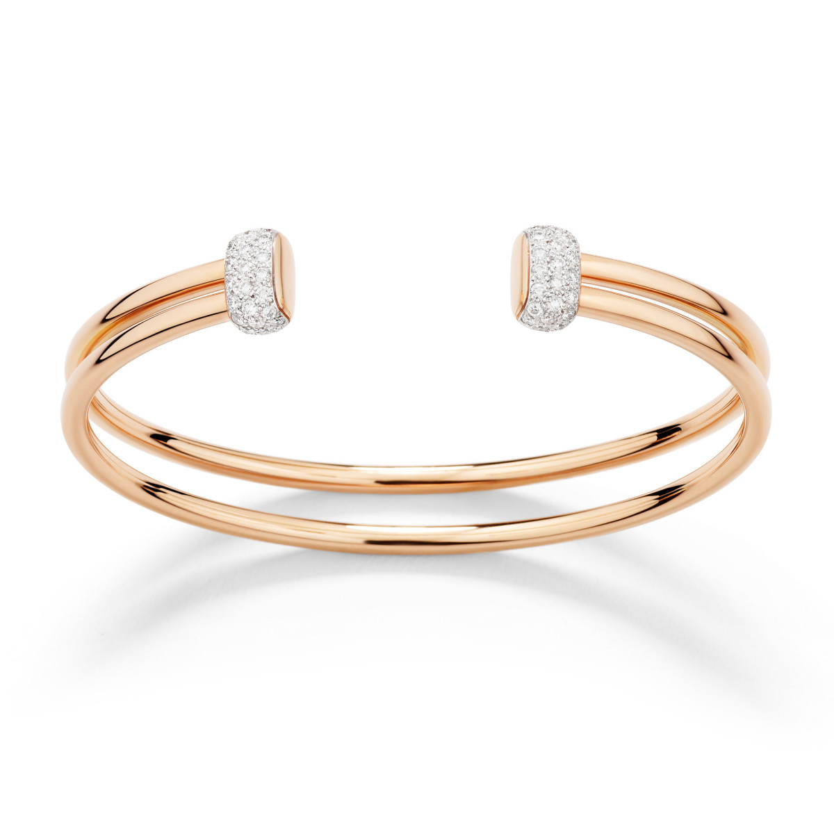 Ref. PBC5010O7WHRDB000 - Die symbolträchtige Kollektion Pomellato Together fängt die Verbindungen ein, die uns zusammenhalten, und feiert die Liebe in all ihren Facetten. Dieser raffinierte Armreif aus Roségold mit weißen Diamanten kombiniert eine flexible Doppelstabstruktur, die sowohl Eleganz als auch müheloses Tragen gewährleistet.