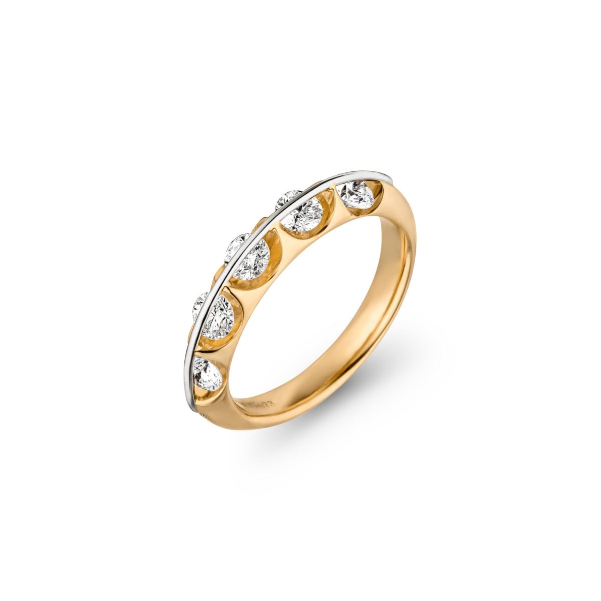 Ref. 118_L1045_80_GW - Mit dem Liberté® hat Schaffrath 2002 eine absolute Weltneuheit präsentiert und so ziemlich alle Kriterien des bis dato technisch Möglichen in der Diamantschmuckherstellung auf den Kopf gestellt. Während der Diamant in harkömmlichen Fassungen fest verankert ist, verleiht das patentierte Liberté®-Fassungssystem dem Stein eine vollkommene Bewegungsfreiheit von 360°. Mit atemberaubendem Ergebnis: Jede noch so kleine Bewegung verändert die Position des Diamanten und lässt ihn im Licht tanzen. Gleich einem funkelnden Feuerwerk wird das Licht von den unzähligen Facetten des Steins zurückgeworfen und strahlt so in allen Spektralfarben und in alle Richtungen. Mehr als 1000 Stunden Entwicklungszeit hat es gebraucht, um das Kunstwerk Liberté® zur Vollendung zu bringen.
