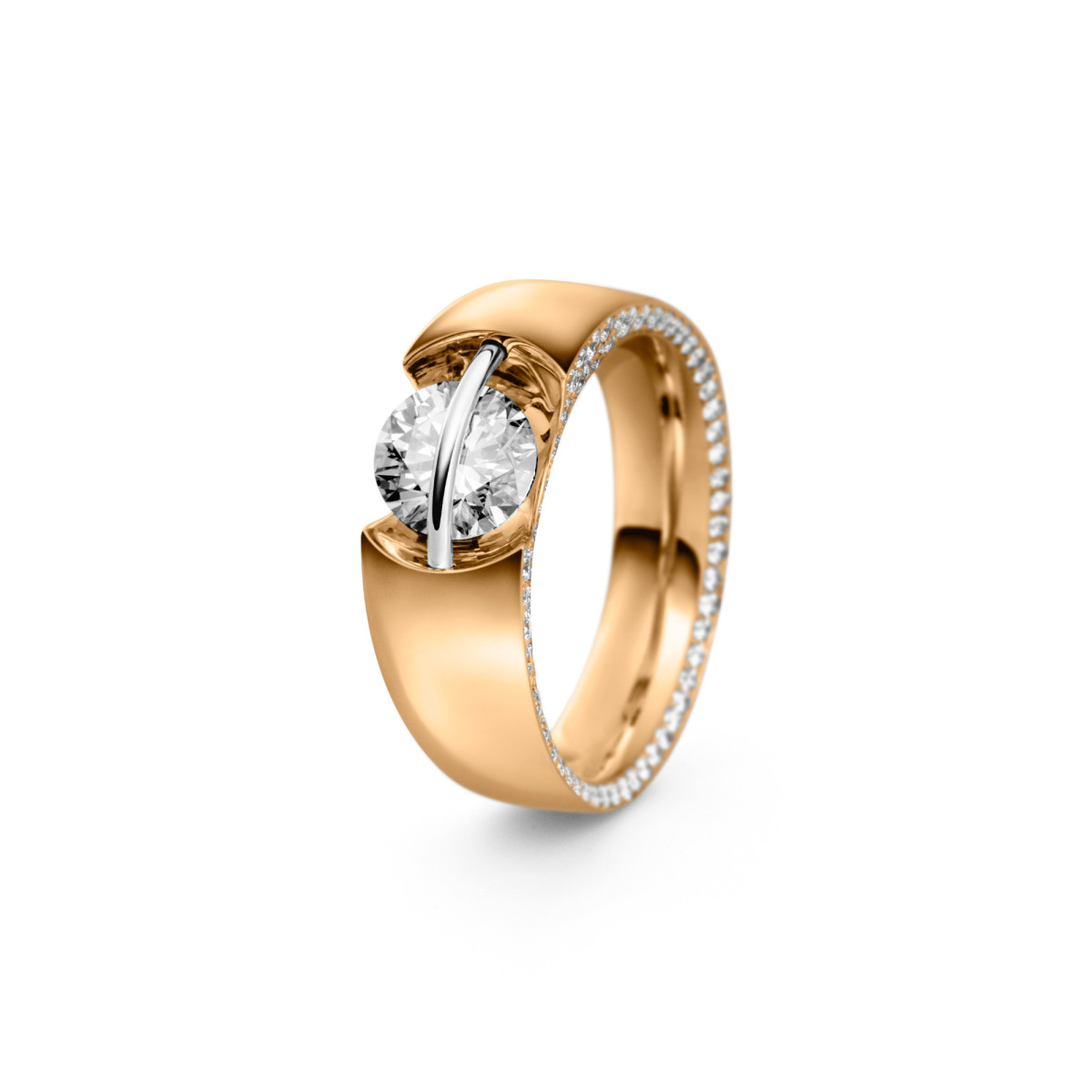 Ref. 118_L1090_100_GW - Mit dem Liberté® hat Schaffrath 2002 eine absolute Weltneuheit präsentiert und so ziemlich alle Kriterien des bis dato technisch Möglichen in der Diamantschmuckherstellung auf den Kopf gestellt. Während der Diamant in harkömmlichen Fassungen fest verankert ist, verleiht das patentierte Liberté®-Fassungssystem dem Stein eine vollkommene Bewegungsfreiheit von 360°. Mit atemberaubendem Ergebnis: Jede noch so kleine Bewegung verändert die Position des Diamanten und lässt ihn im Licht tanzen. Gleich einem funkelnden Feuerwerk wird das Licht von den unzähligen Facetten des Steins zurückgeworfen und strahlt so in allen Spektralfarben und in alle Richtungen. Mehr als 1000 Stunden Entwicklungszeit hat es gebraucht, um das Kunstwerk Liberté® zur Vollendung zu bringen.