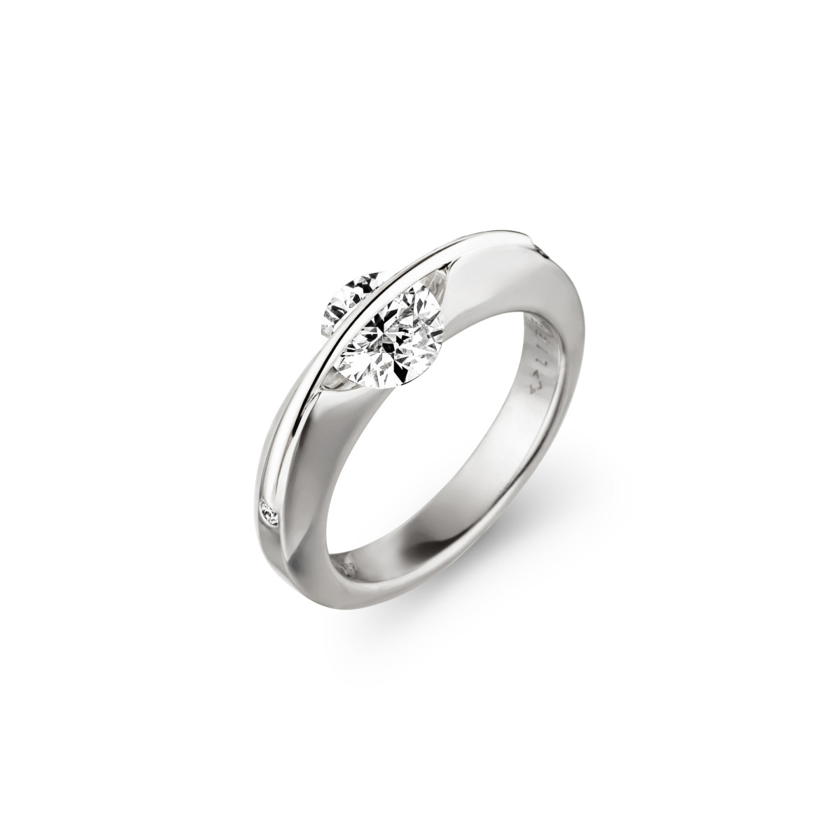 Ref. 218_L1001_100_WW - Mit dem Liberté® hat Schaffrath 2002 eine absolute Weltneuheit präsentiert und so ziemlich alle Kriterien des bis dato technisch Möglichen in der Diamantschmuckherstellung auf den Kopf gestellt. Während der Diamant in herkömmlichen Fassungen fest verankert ist, verleiht das patentierte Liberté®-Fassungssystem dem Stein eine vollkommene Bewegungsfreiheit von 360°. Mit atemberaubendem Ergebnis: Jede noch so kleine Bewegung verändert die Position des Diamanten und lässt ihn im Licht tanzen. Gleich einem funkelnden Feuerwerk wird das Licht von den unzähligen Facetten des Steins zurückgeworfen und strahlt so in allen Spektralfarben und in alle Richtungen. Mehr als 1000 Stunden Entwicklungszeit hat es gebraucht, um das Kunstwerk Liberté® zur Vollendung zu bringen.