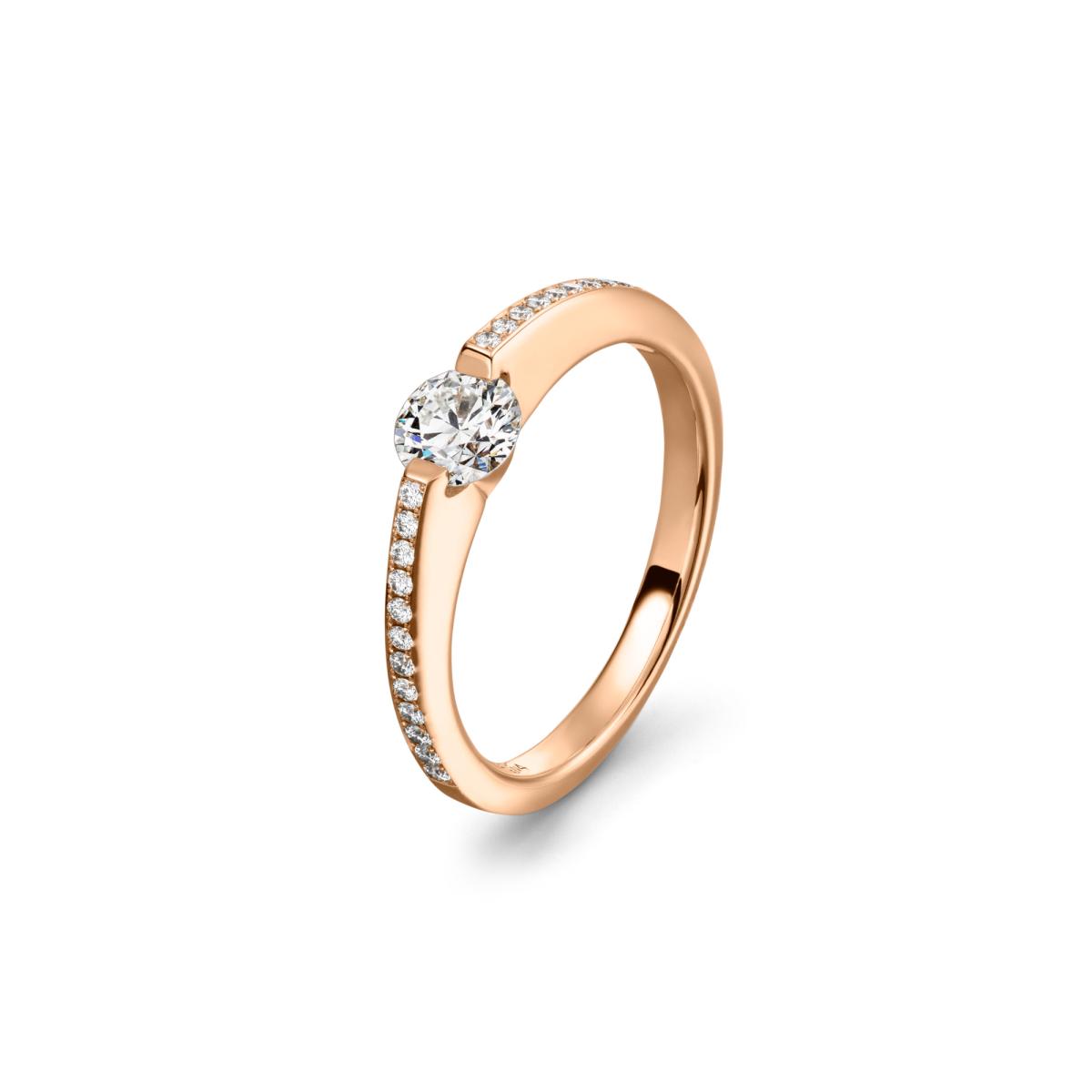 Ref. 758_L2N24_030_RW - Mit dem Liberté® hat Schaffrath 2002 eine absolute Weltneuheit präsentiert und so ziemlich alle Kriterien des bis dato technisch Möglichen in der Diamantschmuckherstellung auf den Kopf gestellt. Während der Diamant in herkömmlichen Fassungen fest verankert ist, verleiht das patentierte Liberté®-Fassungssystem dem Stein eine vollkommene Bewegungsfreiheit von 360°. Mit atemberaubendem Ergebnis: Jede noch so kleine Bewegung verändert die Position des Diamanten und lässt ihn im Licht tanzen. Gleich einem funkelnden Feuerwerk wird das Licht von den unzähligen Facetten des Steins zurückgeworfen und strahlt so in allen Spektralfarben und in alle Richtungen. Mehr als 1000 Stunden Entwicklungszeit hat es gebraucht, um das Kunstwerk Liberté® zur Vollendung zu bringen.