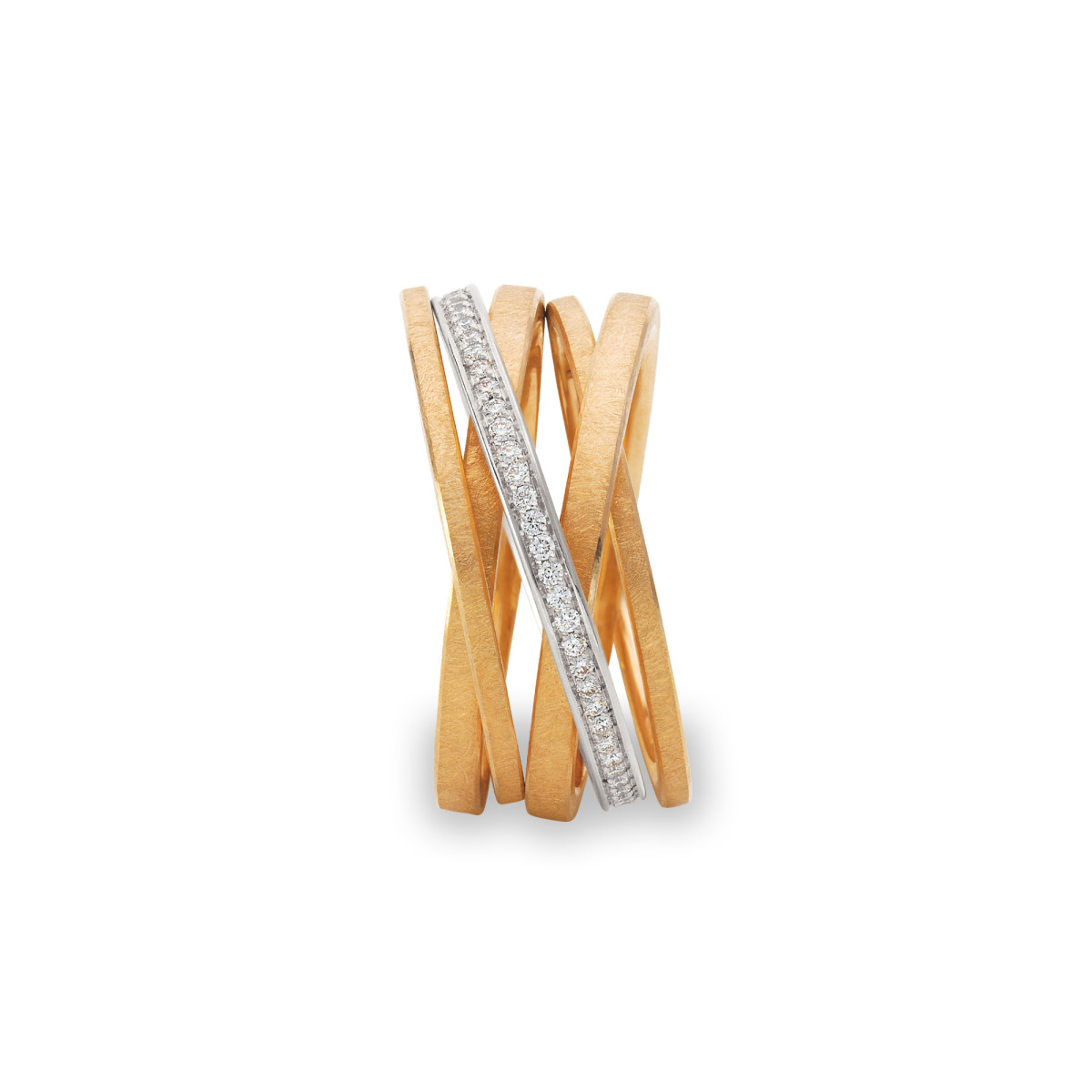 Ref. SR855-GG-PT - Bis jetzt gab es den Kettenring entweder mit vielen schmalen oder wenigen breiten Ringen. Der neue& Kettenring besteht aus unterschiedlichen Breiten. Alle Kettenringe werden jetzt auch in Bicolor für Sie gefertigt.