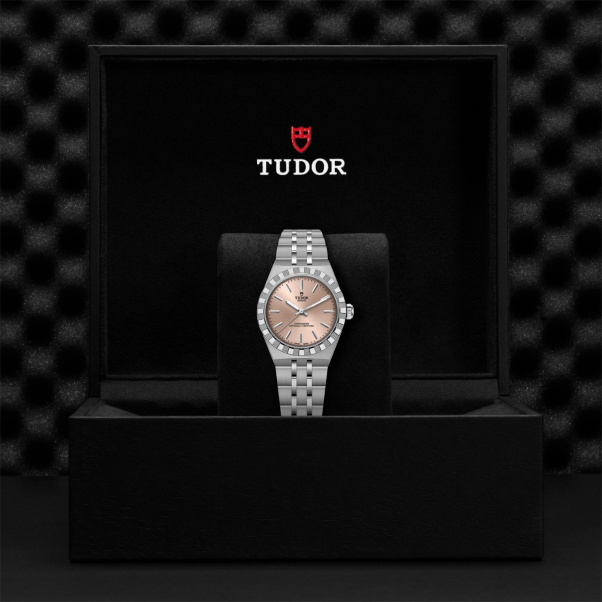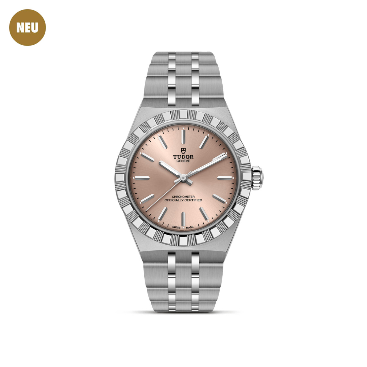 Ref. M2830A1A0-0003 - Mit ihrem integrierten Metallarmband, das nahtlos in das Gehäuse übergeht, zeichnet sich die TUDOR Royal durch ein fließendes und stilsicheres Design aus. Charakterisiert durch ihre drei breiten satinierten Bandelemente, zwischen denen zwei schmalere polierte Elemente positioniert sind, und ihre „T-fit“-Schließe, betont die glatte Beschaffenheit ihrer Oberflächen die große Aufmerksamkeit, die TUDOR dem Tragekomfort schenkt. Erhältlich in Edelstahl oder mit abwechselnden Elementen in Edelstahl und Gelbgold, sprechen die Modelle dieser Linie mit ihrer fein bearbeiteten Oberfläche jeden Geschmack an.