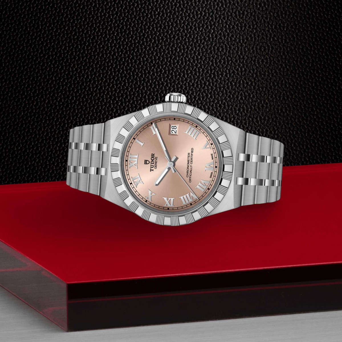 Ref. M2836C1A0-0105 - Mit ihrem integrierten Metallarmband, das nahtlos in das Gehäuse übergeht, zeichnet sich die TUDOR Royal durch ein fließendes und stilsicheres Design aus. Charakterisiert durch ihre drei breiten satinierten Bandelemente, zwischen denen zwei schmalere polierte Elemente positioniert sind, und ihre „T-fit“-Schließe, betont die glatte Beschaffenheit ihrer Oberflächen die große Aufmerksamkeit, die TUDOR dem Tragekomfort schenkt. Erhältlich in Edelstahl oder mit abwechselnden Elementen in Edelstahl und Gelbgold, sprechen die Modelle dieser Linie mit ihrer fein bearbeiteten Oberfläche jeden Geschmack an.